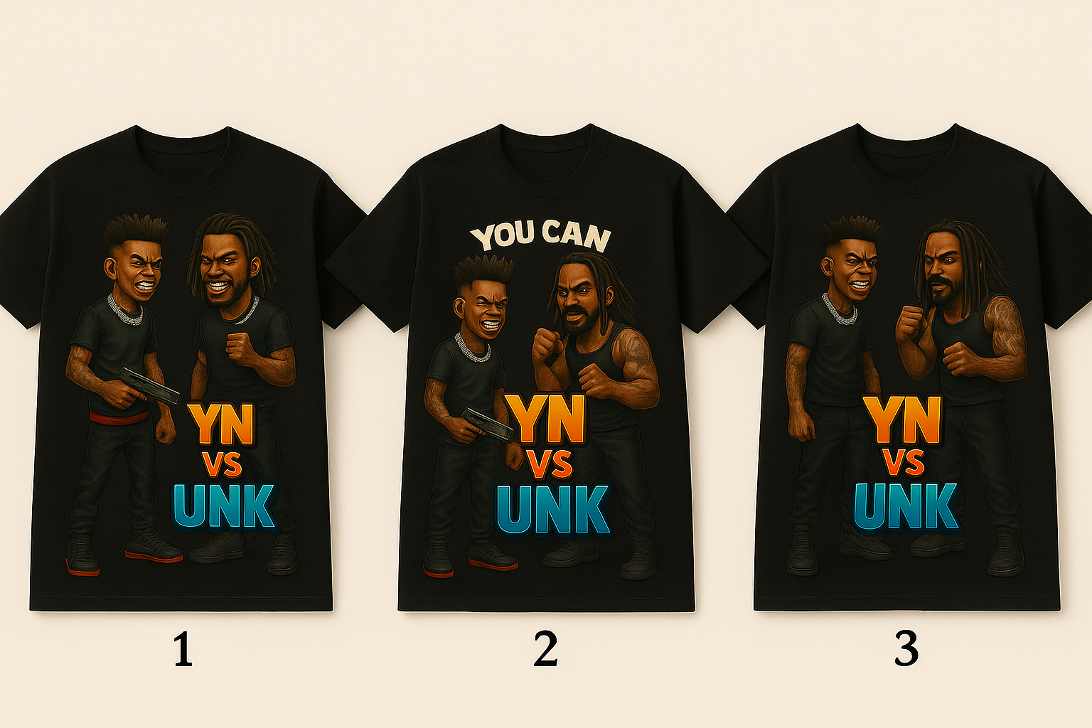 Whether you’re repping YN, UNK, or just love the gritty cartoon-realism style, this tee delivers style, edge, and quality in one clean package.